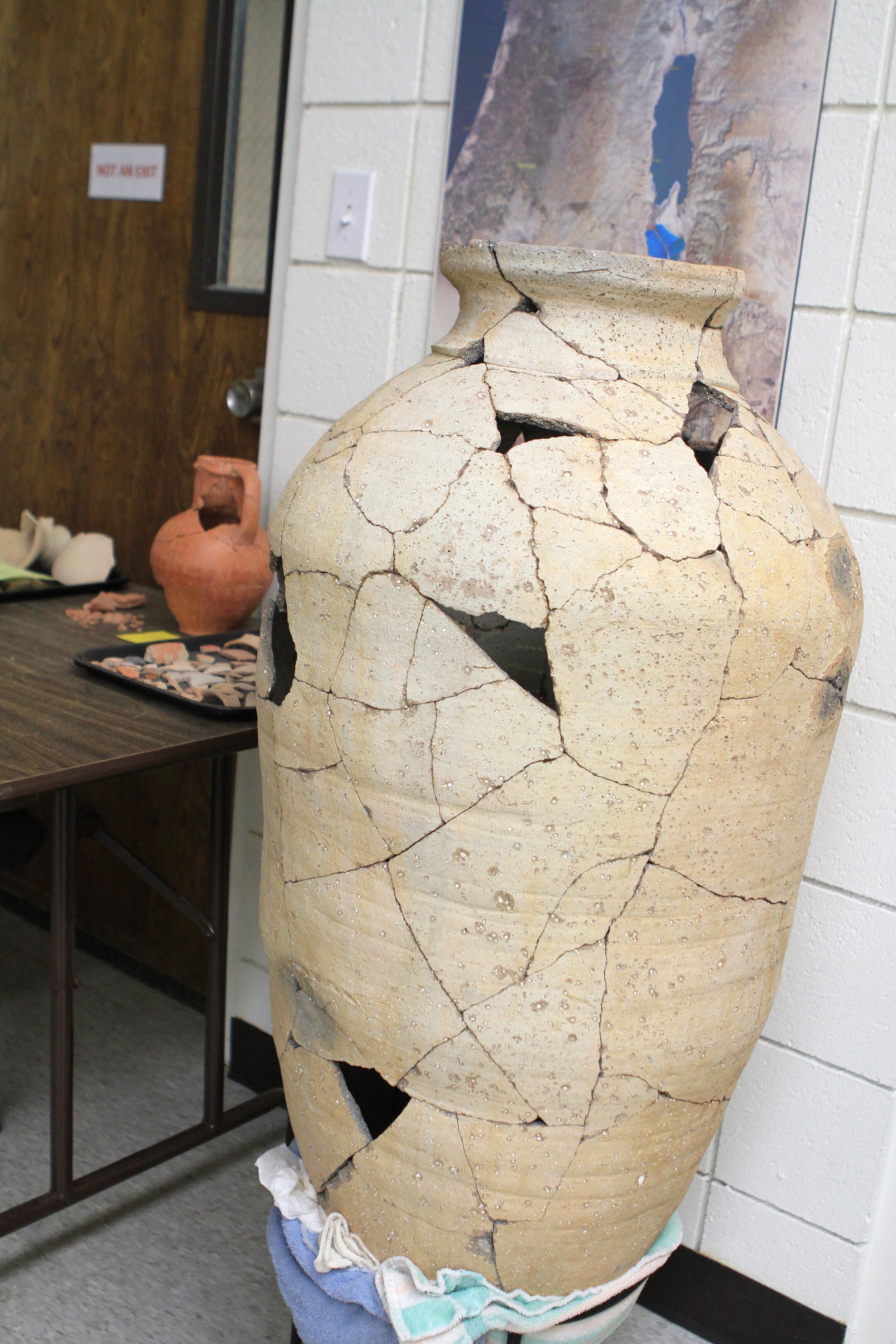 <p>A 3,000-year-old reconstructed jar on display at La Sierra University's Center for Near Eastern Archaeology.</p>