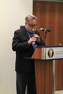 LaBianca told the lecture audience of the establishment in 2018 of the ASOR Lawrence T. Geraty Community Archaeology Endowment to fund community-initiated projects toward caring for and presenting archaeological sites. Geraty’s many roles include serving as a past president for ASOR.