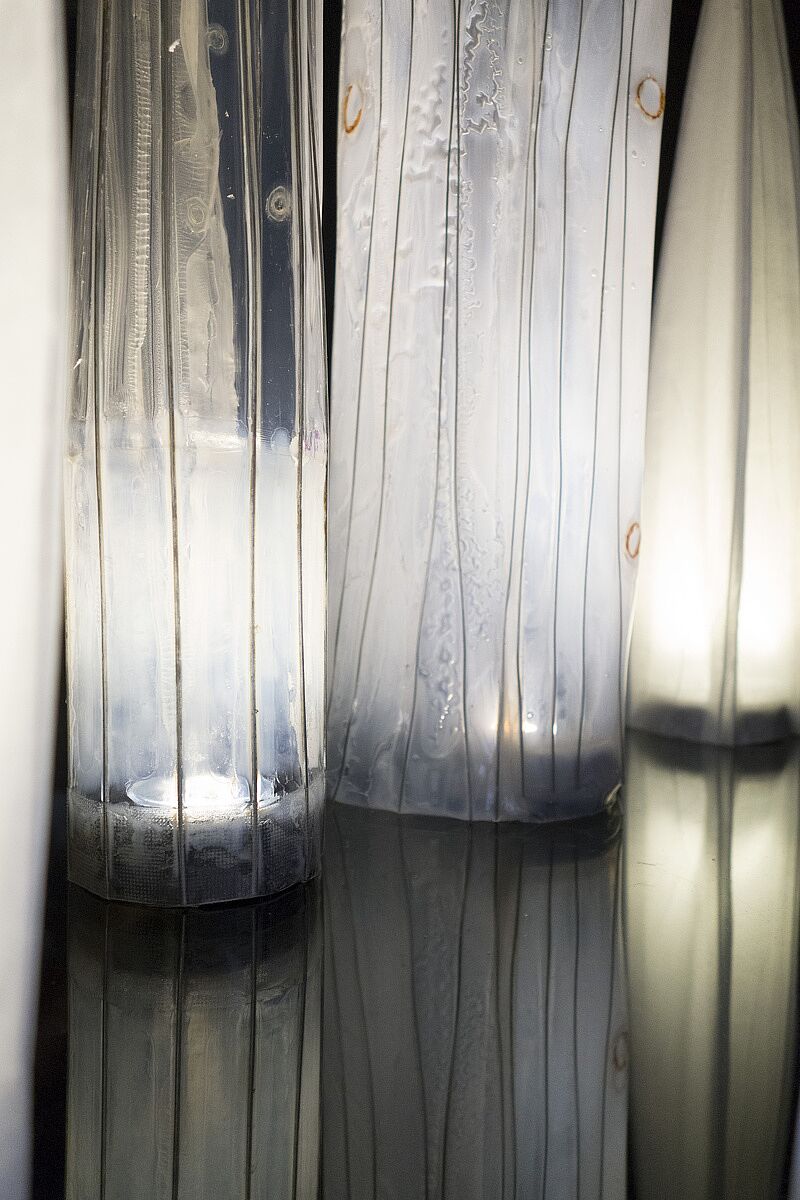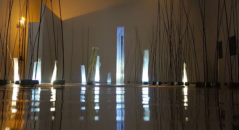 “Resonance” creates an installation space that encourages reflection through lights, translucent sculpture, concrete blocks and willow branches. Viewers are invited to interact with the light sculptures by changing the color through remote controls and find a visual experience that resonates with them.