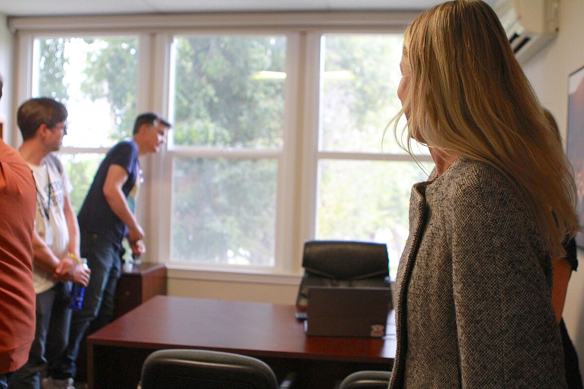 During the grand opening, students and faculty had the chance to interact with the reptiles, with Division of Pre-Health Director Melissa Tafoya holding one of the snakes for a hands-on demonstration.