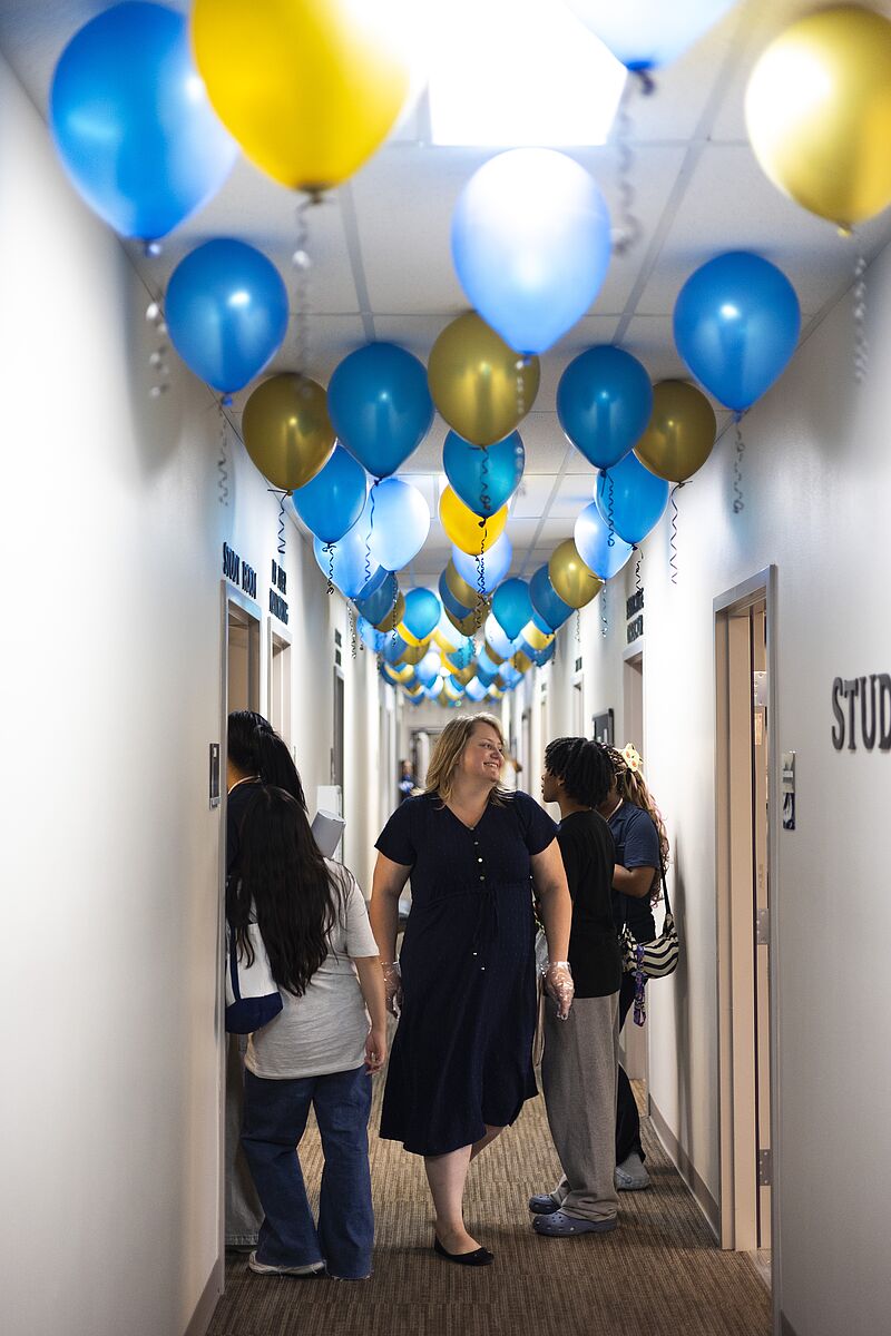 SHARP Hall is more than just a place to study. Students can gather in the Student Center, collaborate in the Group Study Room, connect across generations in the Peer Mentoring Room, or meet with faculty in a dedicated Graduate Office. The hall is designed to promote academic success, mentorship, and personal well-being, creating a space that nurtures both learning and a sense of community for students on campus.