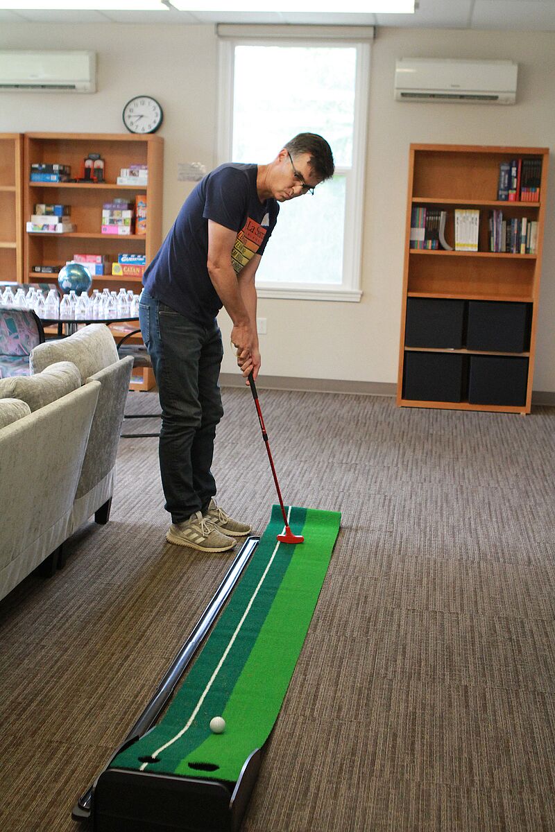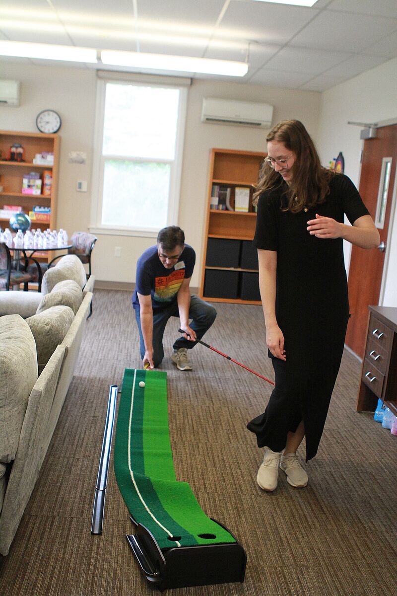 When students need a break from studying, the Zen Den provides a calm, quiet space to unwind with a unique twist: live reptiles. The snakes and other reptiles, safely kept in aquariums, are used strictly for educational purposes. “They are only seen during scheduled educational sessions,” explained Amanda Kaatz, associate director of the division and a 2021 biology graduate with herpetology research experience. “When the Zen Den is being used for relaxation or stress management, the snakes are not visible.”