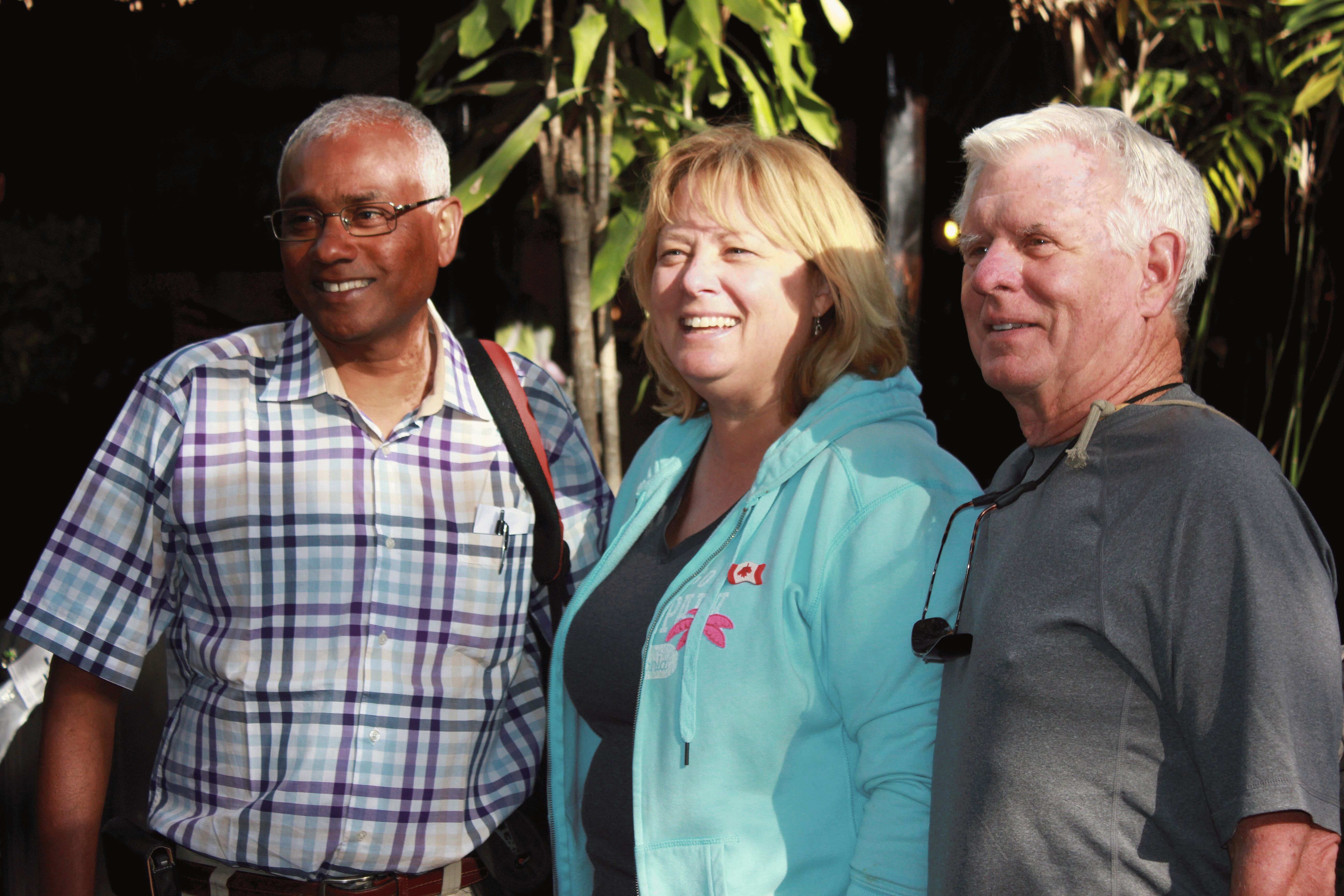 A Better World co-founder Eric Rajah with Karen and Dennis Hansberger. (Photo courtesy of Glen Hutton)