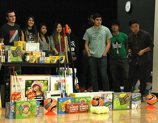 La Sierra University Senior Project students raised thousands of dollars to purchase supplies and games. They transported the goods to Stokoe Elementary for a presentation. Products will also benefit Wells Middle School.