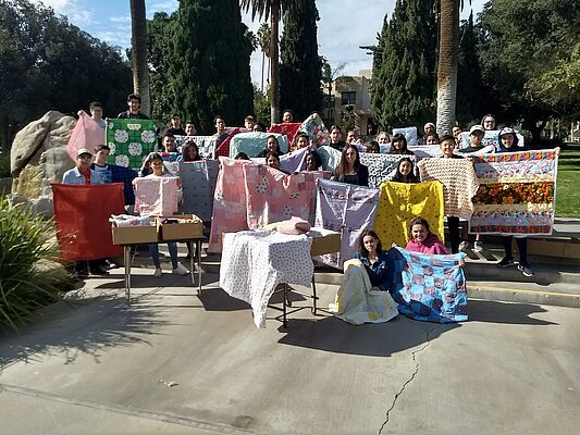 The La Sierra University Golden Eagles baseball team led by Coach Gabriel Gamboa conducted a campus-wide toy drive in late November to benefit young patients of the Pediatric Hematology/Oncology Clinic in San Bernardino, an outpatient service of Loma Linda University Children’s Hospital. Earlier that month, students in two religion classes helped pack quilts donated by the university’s Stahl Center for World Service. The quilts were shipped for distribution to those who had lost their homes during the devastating Camp Fire that destroyed most of the city and surrounding areas of Paradise, Calif.