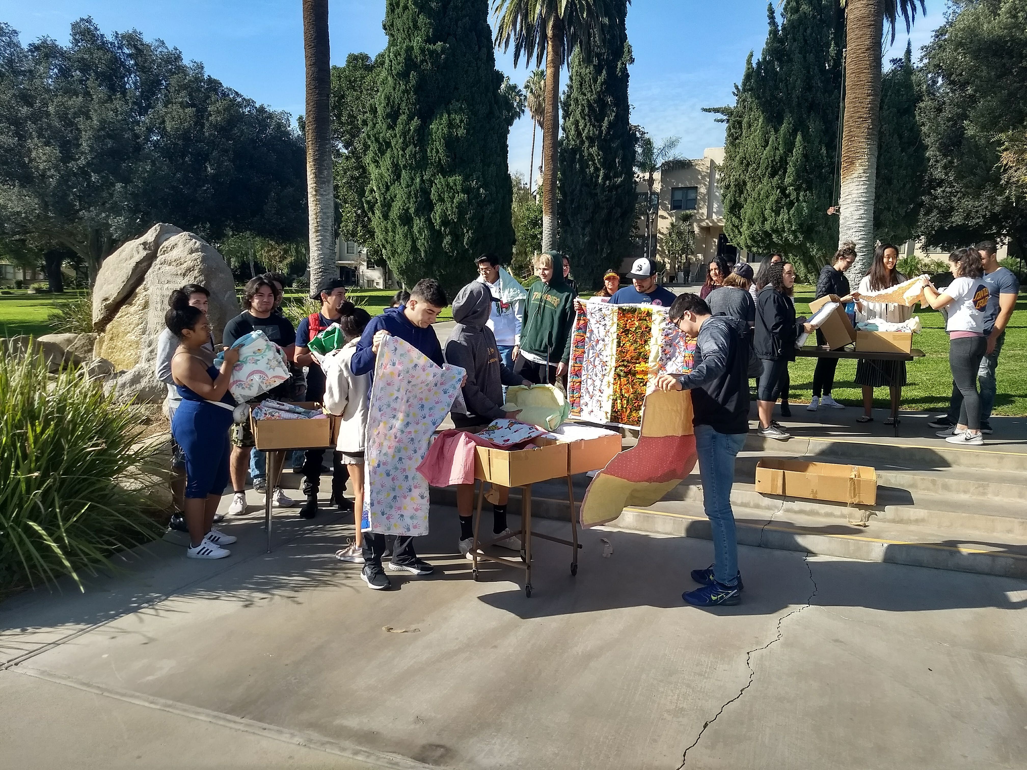 The La Sierra University Golden Eagles baseball team led by Coach Gabriel Gamboa conducted a campus-wide toy drive in late November to benefit young patients of the Pediatric Hematology/Oncology Clinic in San Bernardino, an outpatient service of Loma Linda University Children’s Hospital. Earlier that month, students in two religion classes helped pack quilts donated by the university’s Stahl Center for World Service. The quilts were shipped for distribution to those who had lost their homes during the devastating Camp Fire that destroyed most of the city and surrounding areas of Paradise, Calif.